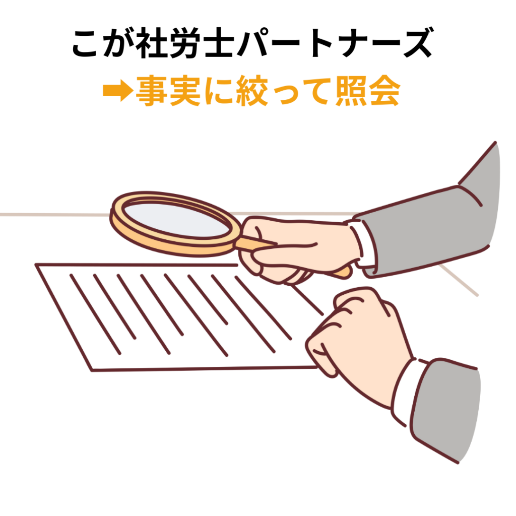こが社労士パートナーズでは、本来のチェックだけに特化して、人の感情が入り込まない”事実”だけを照会します。事実のみに絞ることで、最低限のリスク管理にはなりますが、いわゆる問題社員の採用可能性を下げられるかと思います。