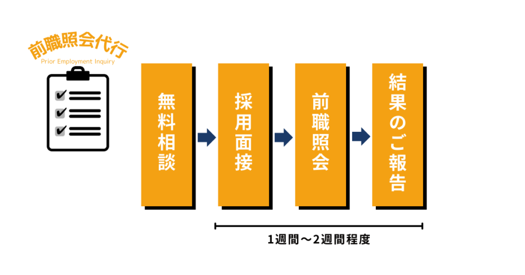 採用段階で、候補者に対して、①書面への記載と②前職へ照会することの許可を頂きます。*面接後は、候補者から前職に対して、一報入れて頂きます(前職の特定の人物を推薦頂くような手間は不要です)。上記の①②についてもお任せしたい場合は、オプションとして、採用面接への同席をいたします。①②をご自身で行う場合も、事前に文言などを共有させて頂きます。